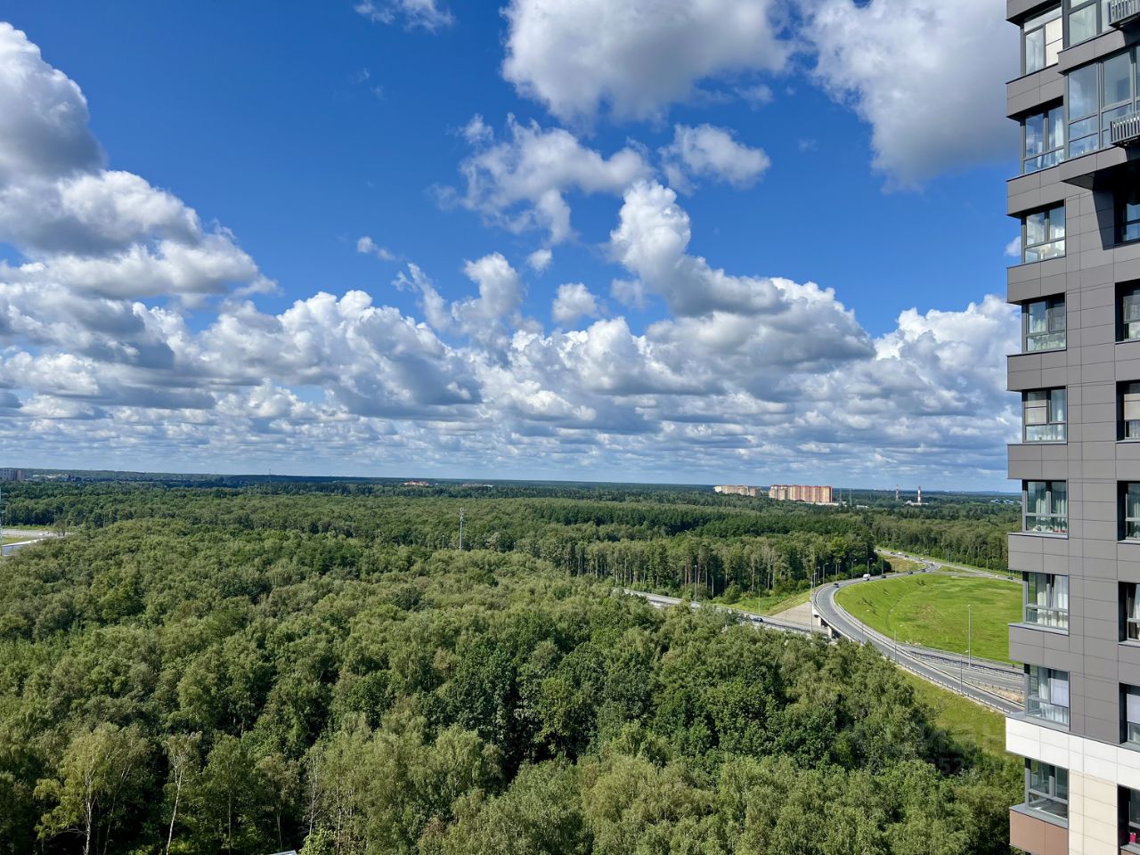 В ЖК открыта школа и два детских садика, до цента города 15 мин, все первые этажи коммерция - есть все (кафе, магазины, аптеки, и тд). Модный, современный комплекс, чистейший воздух благодаря лесному массиву рядом