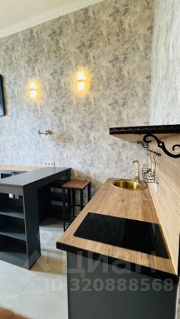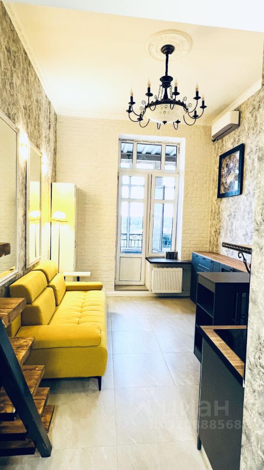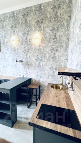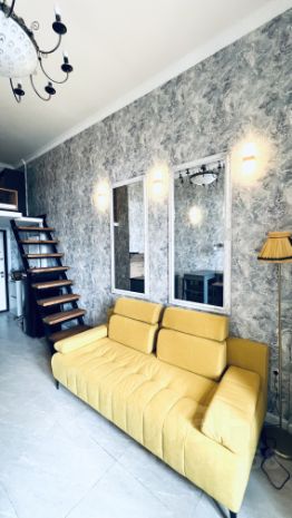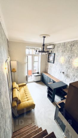Функциональная планировка: спальная зона на втором ярусе (высота спальной зоны 1,4 м), кухня-гостиная внизу. Высота потолков 3,7 м. Есть лоджия.