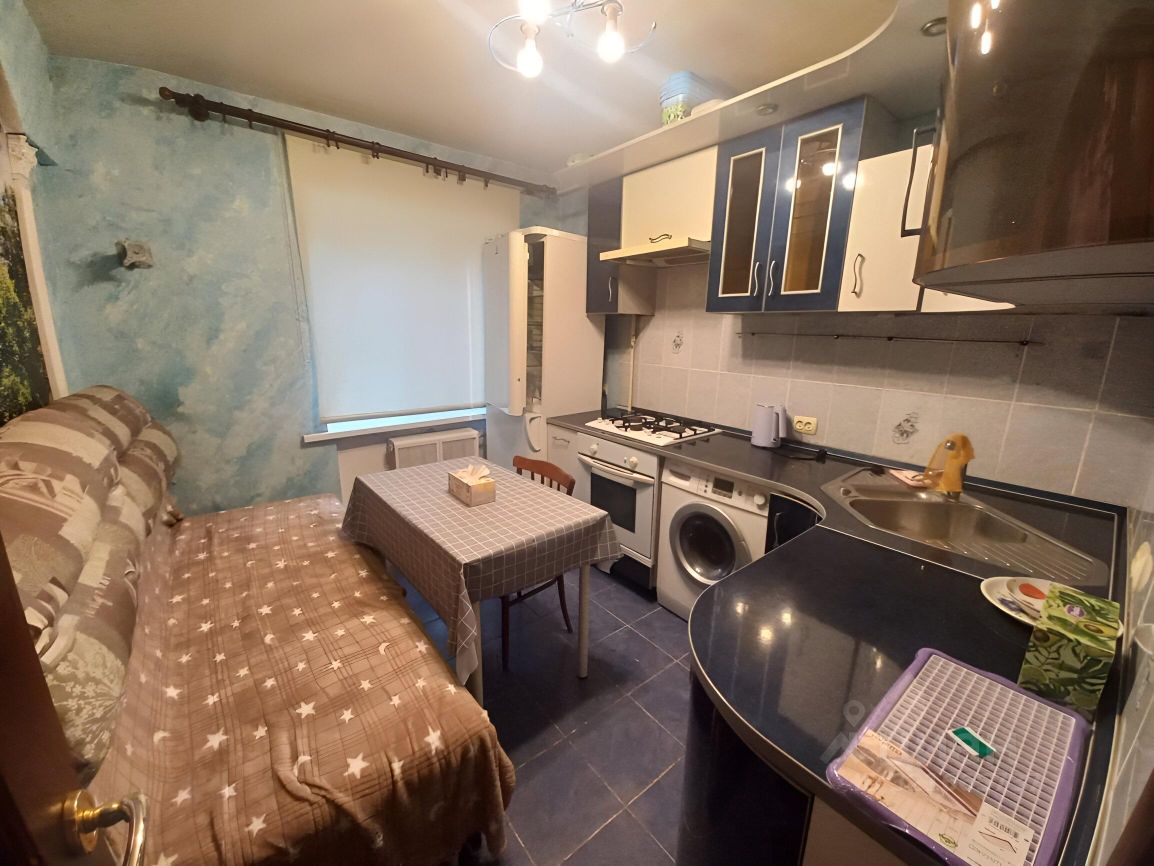 В квартире выполнен косметический ремонт, комнаты смежные. В наличии вся необходимая мебель: шкафы, диван, кровать, а также бытовая техника — холодильник, стиральная машина и телевизор.