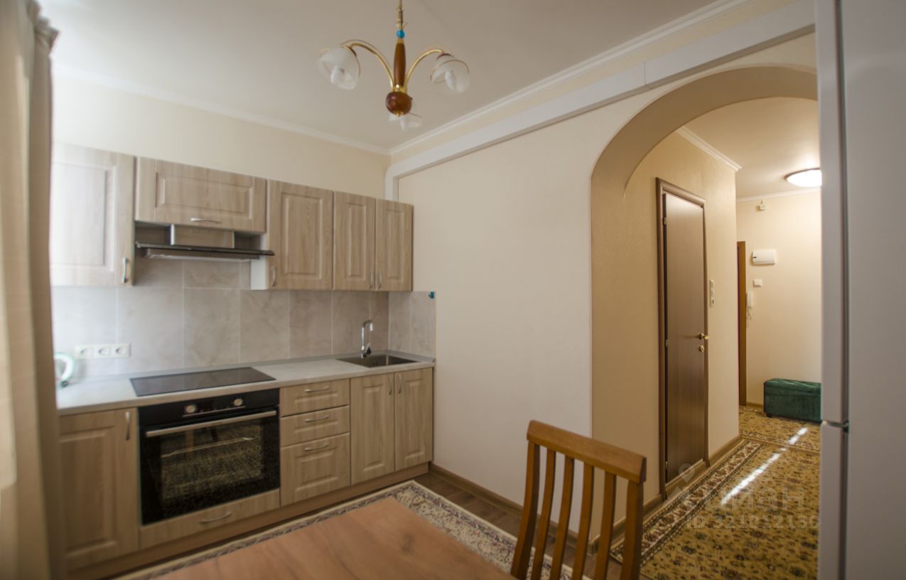 В кухне - функциональное рабочее место, оснащенное современной бытовой техникой, включая духовую печь и варочную панель, под единой столешницей, вытяжку, двухкамерный холодильник, чайник.