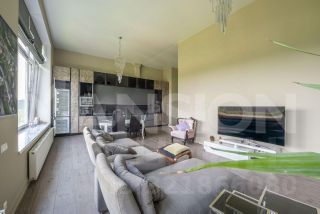 Квартира со стильным свежим ремонтом. В квартире кухня-гостиная с 3 панорамными окнами, мастер-спальня с с\у и гардеробной, во второй спальне организовано спальное место на антресоли, под которой находится гардеробная. При ремонте использованы натуральные и экологичные материалы: натуральный камень, на полу и в мастер-спальне натуральное дерево. Проложены теплые полы, в том числе и в тамбуре перед входом в квартиру. Также имеется просторное машиноместо в подземном паркинге, которое можно снять (лот 9697)