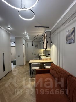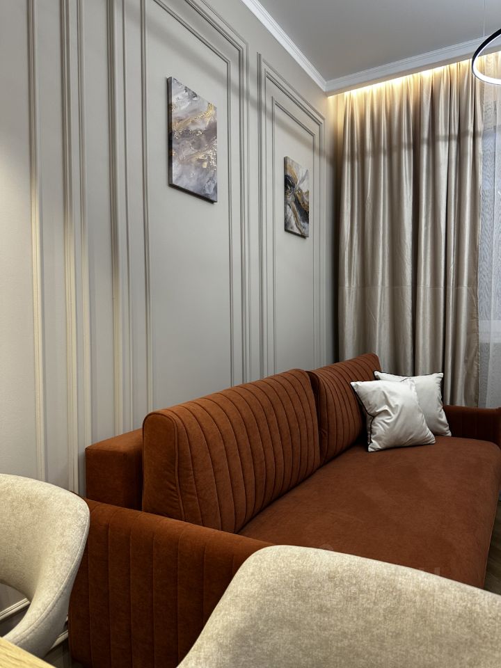 В квартире выполнен дизайнерский ремонт, который создаёт уютную и современную атмосферу. В комнате есть вся необходимая мебель для комфортного проживания. Кухня оснащена встроенной техникой: холодильником, посудомоечной машиной, духовкой, посудой и кондиционером. В ванной комнате установлена ванна, а также есть стиральная машина. Окна выходят во двор, поэтому в квартире тихо и спокойно. Подземная парковка решает вопрос с размещением автомобиля.