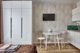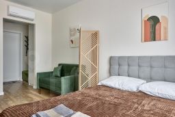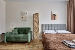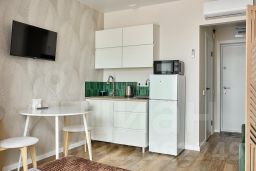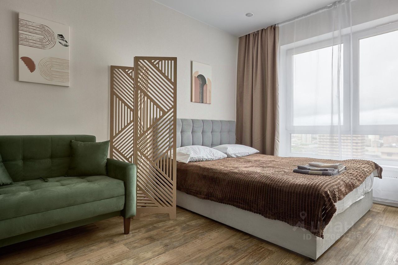 Квартира-студия 25 кв. м Посуточная аренда квартиры включает следующие удобства: - Современная мебель - Двухспальная кровать - Диван раскладывается - Бытовая техника - WI-FI - Смарт ТВ. - Оборудованная кухня, полный комплект посуды для приготовления и приёма еды - Шампунь/гель/мыло, фен. Максимальное число гостей - 3 Двор без машин. Прекрасный вид из окна. Этаж - 25 из 25.