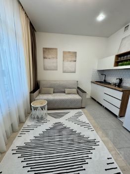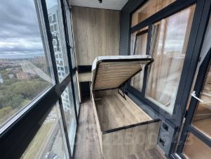 Полностью проведена замена стеклопакетов, утеплены стены, потолок. Пол с подогревом. Из мебели установлен вместительный шкаф, кровать с подъемным механизмом, стол и декоративные полки с подсветкой.