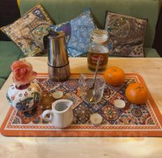 Оборудованная кухня: вся необходимая посуда, чай, молотый кофе, соль, растительное масло и специи.