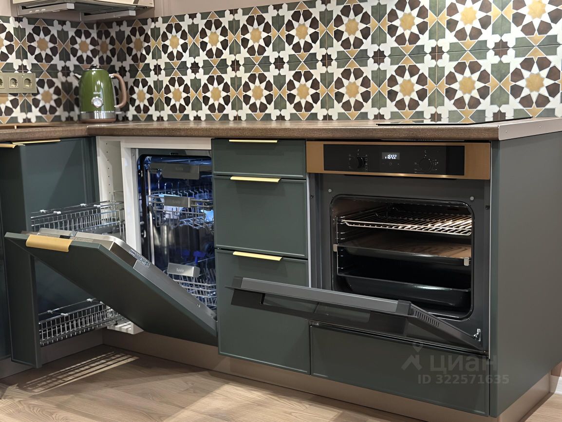 На кухне есть все возможности для создания кулинарных шедевров , в том числе и духовой шкаф, а необходимость в мытье посуды отпадает, ведь посудомоечная машина все сделает сама, и даже автоматически откроет дверь по завершению. Мебель из массива дерева в просторной обеденной зоне дополнит гамму чувств и вкусов.