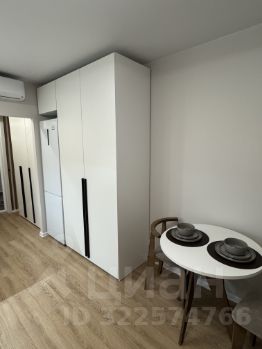 Общая площадь - 21,5 кв.м., квартира расположена на 14 этаже, в доме один подъезд. Окна выходят на наземную многоуровневую парковку и город.
