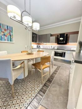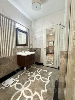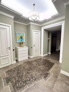 В квартире много где есть теплый пол, как электрический, так и от общего отопления, что зимой очень удобно, например, сушить обувь, одежду после прогулок. В квартире очень высокие потолки, много воздуха и пространства. Есть 2 гардеробные, 3 санузла, много шкафов и мест для хранения. Есть отдельная постирочная, если нужно, можно оставить всю технику, сушильную машину, стиральную, есть домашний кинотеатр с хорошим звуком, массажное кресло.
