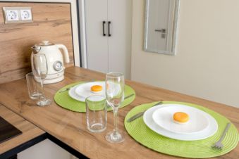 - предметы быта: кухонная посуда и столовые приборы/ утюг, гладильная доска и сушилка