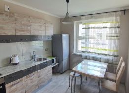 Сдается чистая, светлая, теплая 2 комнатная квартира с мебелью и бытовой техникой, есть все необходимое для комфортного проживания семьи: мебель: два диваны раскладываются, шкафы, рабочее место угловой стол с полками, в большой комнате зону можно разделить, кухонный гарнитур, эл.плита, духовка, холодильник, микроволновка, чайник, стиральная машина, бойлер, утюг и пр. в наличие. Общая площадь квартиры 54 м. кв., комнаты изолированные 17,8 м.кв., 13,3 кухня 9,2, окна выходят на Восток, во двор, с/узел раздельный, застекленная лоджия, 13/18 этажного дома. Дом теплый с чистыми подъездами, консьерж, есть вход в подъезд со двора, спокойный зеленый район, детская площадка, отзывчивые, доброжелательные соседи.