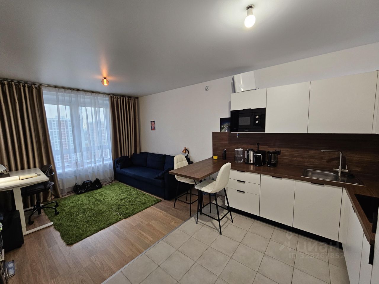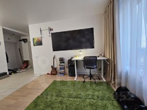 В квартире качественный ремонт. Просторная кухня площадью 17 кв. м оборудована всей необходимой техникой: холодильником, посудомоечной машиной и телевизором. Также в наличии стиральная машина. В комнатах и на кухне есть мебель. Санузел совмещенный, с ванной.
