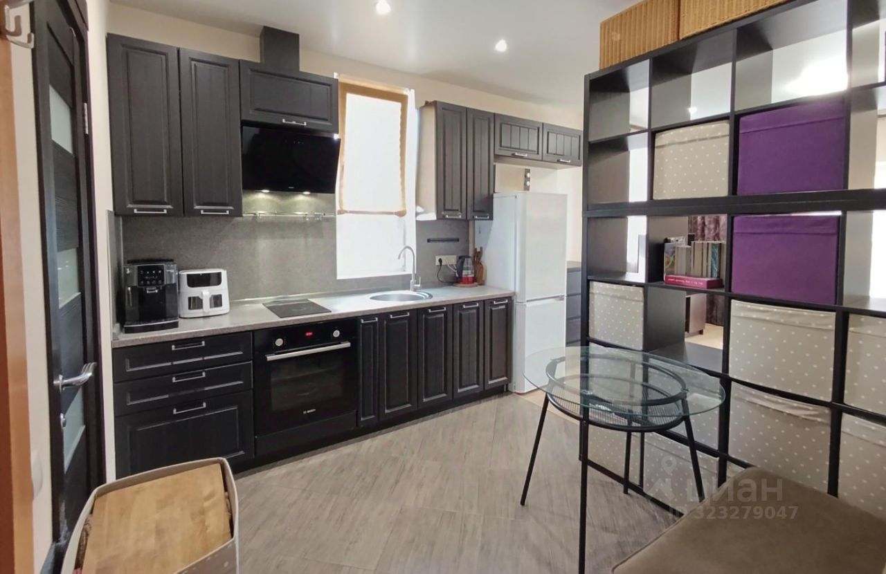 В квартире удобное и функциональное пространство: кухонная зона отделена от зоны отдыха с выходом на застекленную теплую лоджию с панорамными окнами и подогревом пола.
