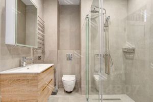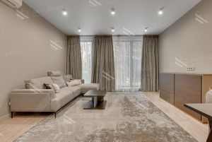 В квартире высокие потолки (3 метра), панорамные окна, интеллектуальные системы очистки воздуха и отделка из натуральных материалов создают атмосферу уюта и благородства.