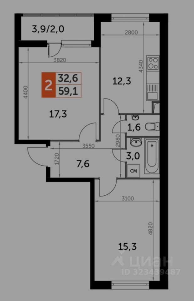 57 м²