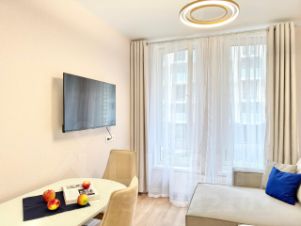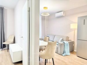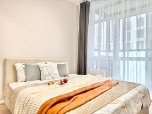 Стильная и просторная евро-двухкомнатная квартира порадует своих Гостей современным ремонтом, продуманной кухонной зоной, прекрасным видом из окна и качественной спальной мебелью в новом ЖК.