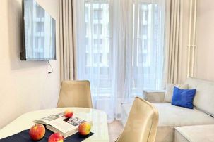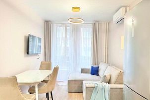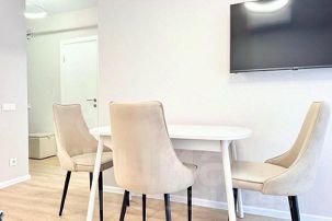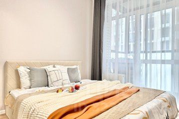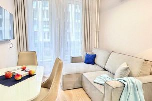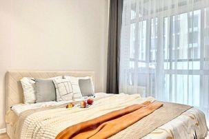 Стильная и просторная евро-двухкомнатная квартира порадует своих Гостей современным ремонтом, продуманной кухонной зоной, прекрасным видом из окна и качественной спальной мебелью в новом ЖК.
