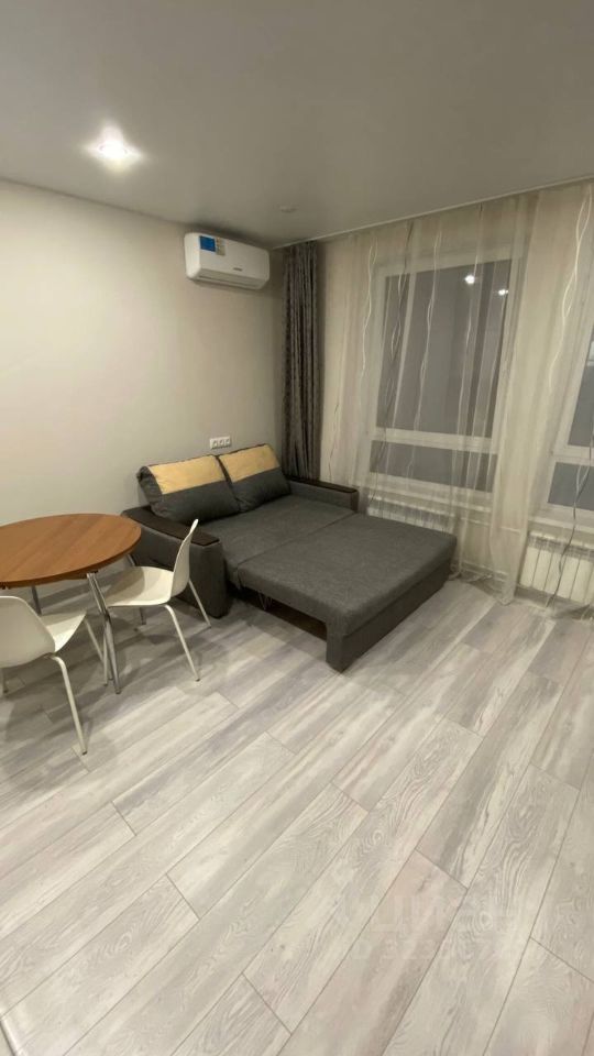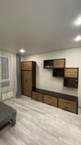 В квартире выполнен евроремонт, поэтому здесь светло и комфортно. Пространство студии рационально организовано: есть всё необходимое для жизни. В комнате и на кухне установлена мебель, а для вашего удобства предусмотрена вся необходимая техника: кондиционер, холодильник, духовка, микроволновка и стиральная машина. Санузел совмещённый, с ванной.