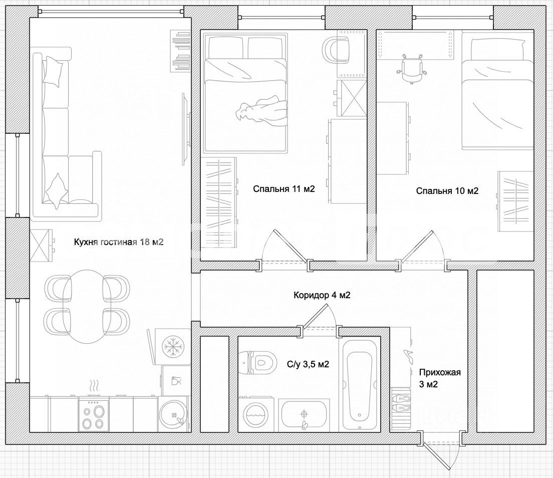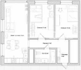 Сдается в аренду просторная (51,7 кв.м.!), видовая 3-комнатная квартира (кухня гостиная и две спальни), на длительный срок в жилом комплексе комфорт класса "Инновация".