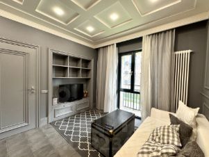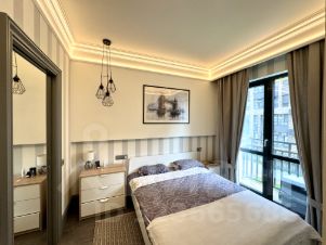 Квартира с дизайнерским ремонтом, в ней есть вся необходимая мебель и бытовая техника (холодильник, посудомоечная машина и кондиционер, телевизор, стиральная машина). Санузел совмещенный, оборудован душевой кабиной. Есть гардеробная комната и встроенные шкафы для хранения вещей.