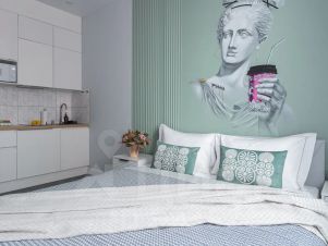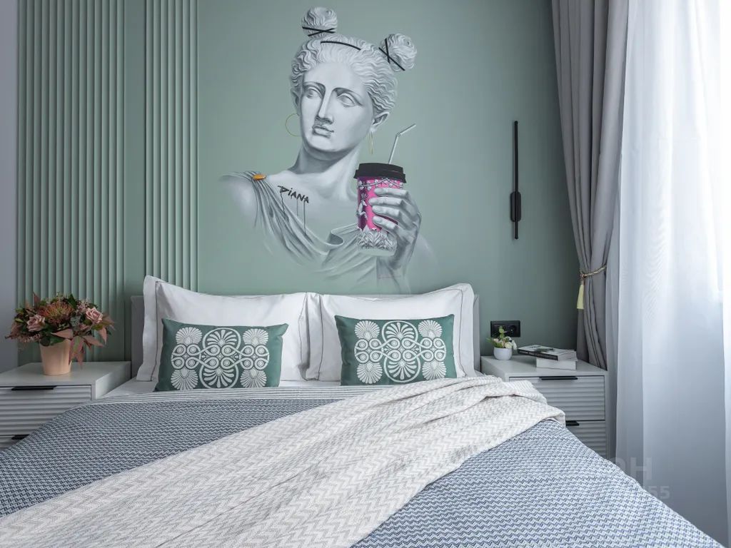 Каждая наша студия оформлена в неповторимом греческом стиле. Особенность интерьера — роспись ручной работы, посвященная одному из богов Олимпа. Это не просто место для проживания, это погружение в атмосферу мифов и эстетики.