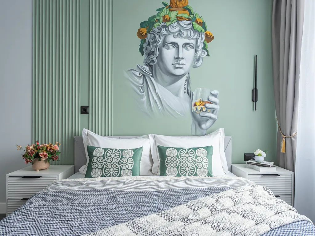 Каждая наша студия оформлена в неповторимом греческом стиле. Особенность интерьера — роспись ручной работы, посвященная одному из богов Олимпа. Это не просто место для проживания, это погружение в атмосферу мифов и эстетики.