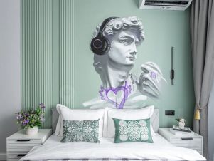 Каждая наша студия оформлена в неповторимом греческом стиле. Особенность интерьера — роспись ручной работы, посвященная одному из богов олимпа. Это не просто место для проживания, это погружение в атмосферу мифов и эстетики.
