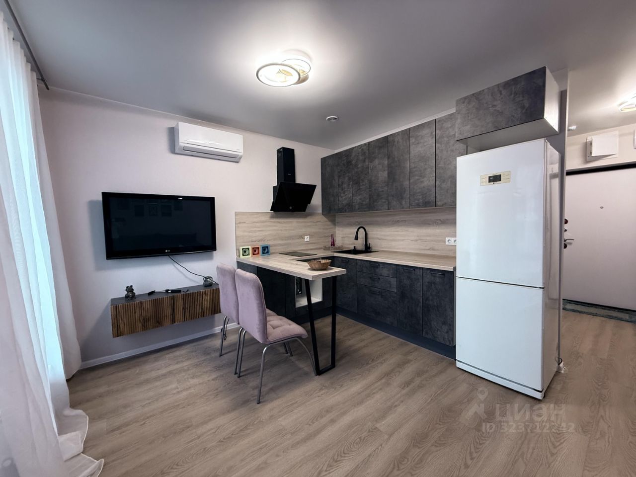 Квартира с евроремонтом: современный дизайн и удобная планировка, есть вся необходимая мебель. В квартире установлены кондиционер, плита, духовка, холодильник, телевизор и стиральная машина. Ванная комната оборудована душевой кабиной, есть стиральная машина. Окна выходят во внутренний двор, с видом на частные дома и на лес, что обеспечивает комфортное проживание.