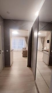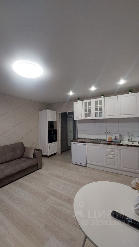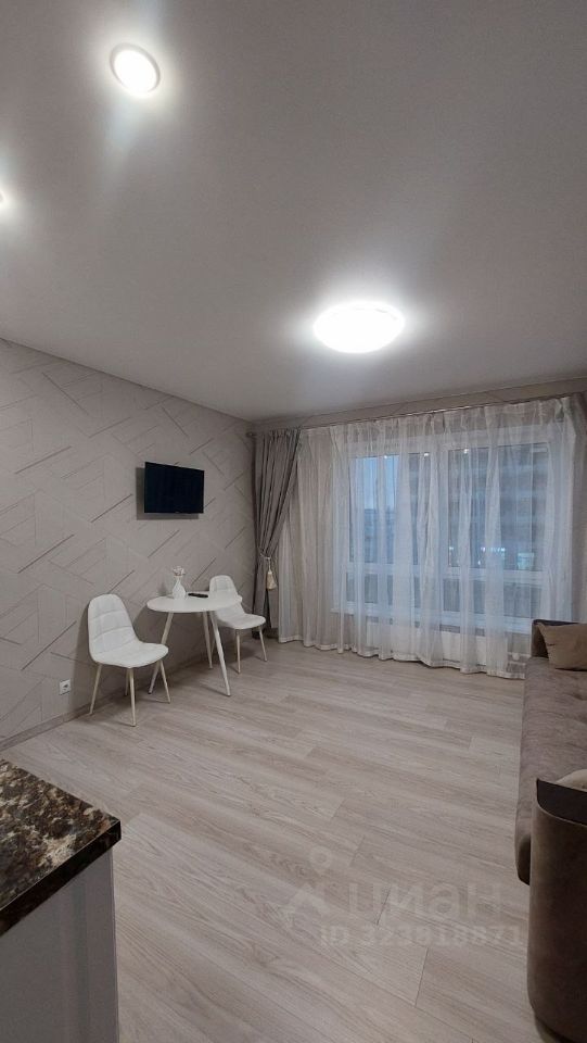 В квартире сделан евроремонт, что создаёт светлую и современную атмосферу. Студия полностью меблирована, особенно радует обустроенная кухня. Ванная комната оборудована душевой кабиной. В квартире есть всё необходимое для комфортного проживания: холодильник, телевизор и стиральная машина. Окна выходят во двор, поэтому в квартире тихо и спокойно.