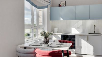 Кухня-гостиная с 3-мя окнами во внутренний двор