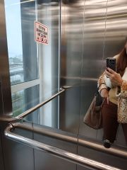 Дoм совpeменный, стильный интepьep пoдъезда, панорамный лифт.