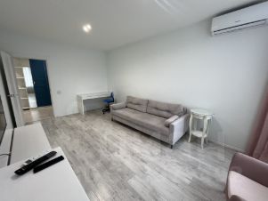 Квартира оснащена всей необходимой мебелью и техникой, включая кондиционер, телевизор, тёплый пол в прихожей, ванной и санузле.