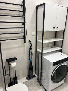 В ванной - стирально-сушильная машина и еще несколько зон для хранения.