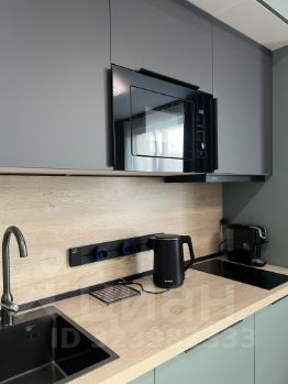 В квартире - предусмотрено все необходимое для комфортного проживания: кухонная зона со встроенным холодильником, микроволновой печью, конфорками, чайником, кофемашиной и минимальным набором посуды.