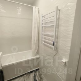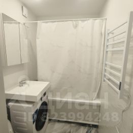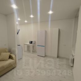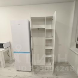 Студия оснащена двумя большими шкафами для вещей, подвесной тумбой в прихожей, вместительным зеркальным навесным шкафом в санузле, кухонным столом, двумя стульями. А также стиральной машиной, холодильником, полноценной ванной, плитой с 4 комфорками, микроволновкой, электрическим полотенце-сушителем.