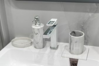 • Интерьер: выполнен в современном минималистичном стиле с акцентом на практичность и эстетичность. Мягкие светлые оттенки и лаконичные формы подчеркивают комфорт.