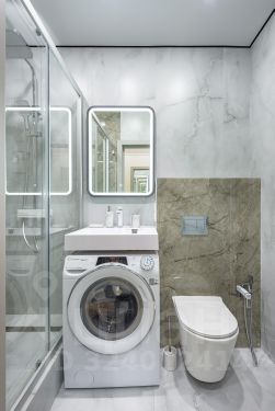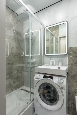• Санузел с просторной душевой и стиральной машиной Candy с сушкой для одежды.