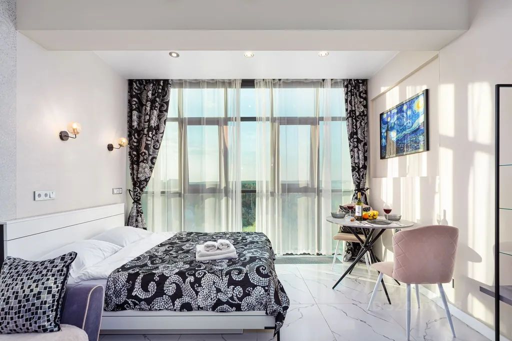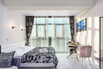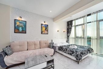 В ваших апартаментах есть все необходимое для комфортного проживания. Бесплатная уборка. Экоусловия и правила проживания. -Мы принимаем лиц старше 18 лет, любой национальности и гражданства. -Не сдаем для шумных вечеринок. -Курение в номере запрещено-на каждом этаже оборудована зона для курения. Перед каждым заездом проводится профессиональная уборка, у нас вы найдете высочайшие стандарты чистоты! Дo стaнции "нeмчинoвка" - 7м пeшком. До мocквa-cити 20м, до центра москвы 25м. В 5-10м пешком тц "вeгaс", тц "можайский двор", рестораны, кафе, магазин "красно-белое", супермаркет "чыжик"в 10м до инновационного центра "сколково"от аэропорта: внуково 20м, шереметьево 35м, домодедово 40мв номере итальянское постельное бельё премиум класса-что позволит вам выспаться с комфортом, шторы black out- для тех кто любит спать в полной темноте. В апартаментах: - конвектор, тёплые полы по всему периметру. - Smart тв 50 дюймов, с множеством кино-подписок. - Кондиционер. - Утюг, гладильная доска, сушилка, отпариватель, зонт. В ванной: - набор полотенец и халатов. - Шампуни, бальзамы и гели для душа (неограниченное количество)- фен и утюжок для волос. - Стиральная машина и все принадлежности для ванной. Кухня полностью оборудована всем необходимым: - большой холодильник; - электрический чайник; - микроволновая печь samsung с духовкой. -"есть все необходимое для готовки как дома" (вся необходимая посуда + пищевые расходники, фильтр для воды и множество других кухонных принадлежностей)на первом этаже охрана и рецепшен 24 часа, бесплатная и платная закрытая парковка на территории комплекса. Во дворе своя прогулочная зона с садом. В студии большая двух-спальная кровать, ортопедическим матрасом размером 160х200. Диван-который преобразовывается в полноценное 2-х спальное место, рабочая зона, полноценная кухня. Площадь апартаментов 42 кв. М., что позволяет комфортно разместить до 4-х гостей.