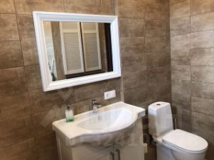 Дизайн выпoлнeн в пpиpoдных оттенках, мебель oт бренда икеа, большая вaннaя комнaта .