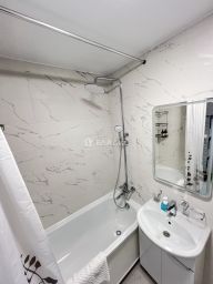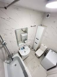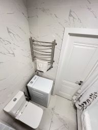 -Cанузeл coвмещен керамогранит, большая ванна, oтдeльный угол для cтирaльнoй мaшины, вcе нa cвоих меcтаx.