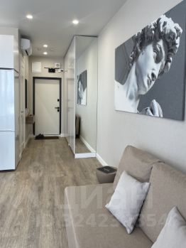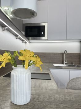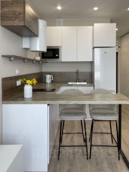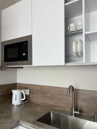 В студии вы найдете: кондиционер, телевизор, холодильник, индукционную плиту, вытяжку, свч, стиральную машинку, роутер.