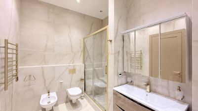 В квартире выполнен дизайнерский ремонт, который подчеркнёт ваш стиль и обеспечит комфорт. Кухня площадью 20 кв. м оснащена всей необходимой техникой: холодильник, посудомоечная машина, кондиционер, телевизор и стиральная машина. Здесь также есть три совмещенных санузла и один отдельный, оборудованные ванной и душевой кабиной. Окна выходят как на улицу, так и во двор, что позволяет наслаждаться видом и тишиной.