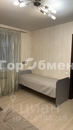 Во второй детской комнате расположена подростковая кровать, раскладной диван и вместительный шкаф во всю стену.