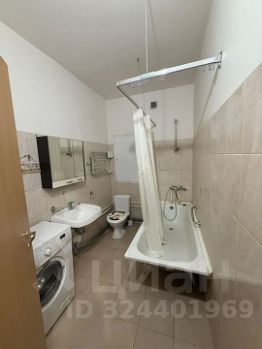 Санузел просторный совмещенный: ванна, стиральная машина.