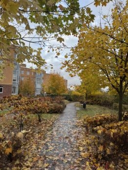Внутренний двор с прогулочными аллеями, местами для отдыха, детскими и спортивными площадками.