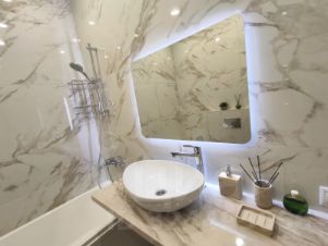 Предлагаем на длительный срок в аренду большую уютную студию с евро ремонтом 30 м2. Имеется вся необходимая мебель и техника: встроенная кухня с плитой, духовым шкафом, посудомоечной машиной и холодильником. Большой гардеробный шкаф. Столовая зона. Ванная комната оборудована современной сантехникой и стиральной машиной.