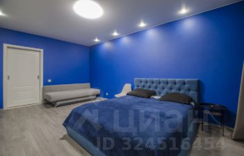 Просторная комната полностью меблирована: имеются мягкий раскладной диван, двуспальная кровать, ЖК телевизор. Стеклопакет, ламинат и светлые тона обоев.