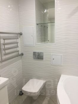 оборудована большая угловая ванна, выполненная из белой итальянской плитки, которая является редкостью для такого вида квартир.