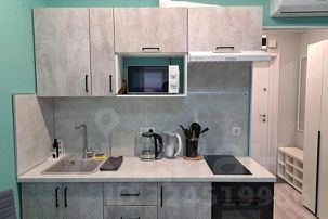 Кухня с плитой, микроволновкой, чайником и всей необходимой посудой