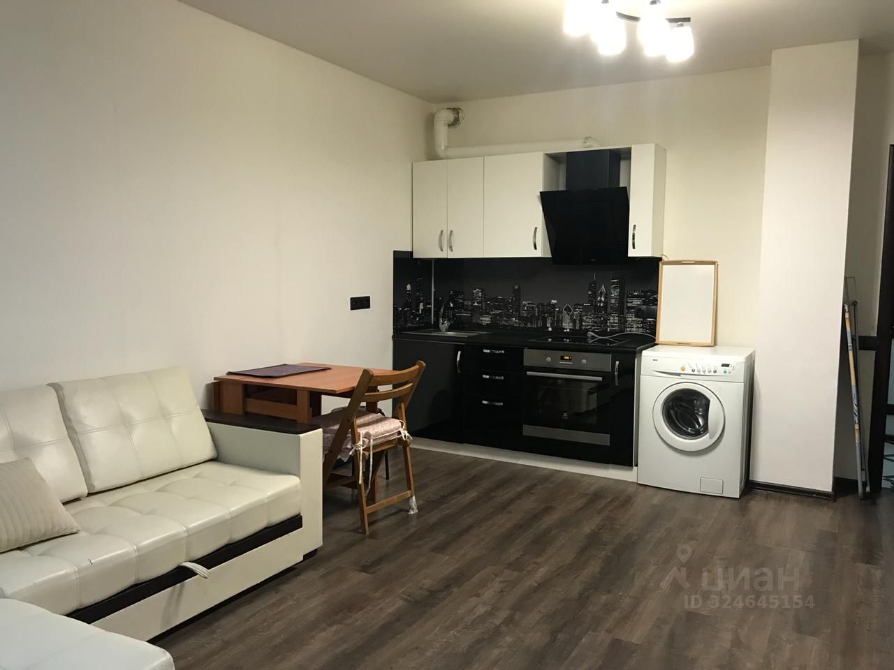 В квартире сделан евро ремонт, студия, коридор отделен от основной комнаты, просторная ванная, есть все необходимое для проживания. Территория комплекса огорожена, под шлагбаумом.