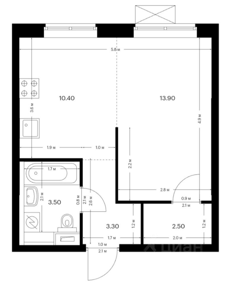 Квартира мебелирована: кровать с матрасом (140см*200см), раскладывающийся диван, тумба под тв, шкаф в прихожей, обеденная зона - стол и стулья. Для вещей подготовлена небольшая гардеробная. Из техники — телевизор, стиральная машинка, холодильник, микроволновка; встроенные варочная панель и функциональный духовой шкаф. Проведён Wi-Fi.